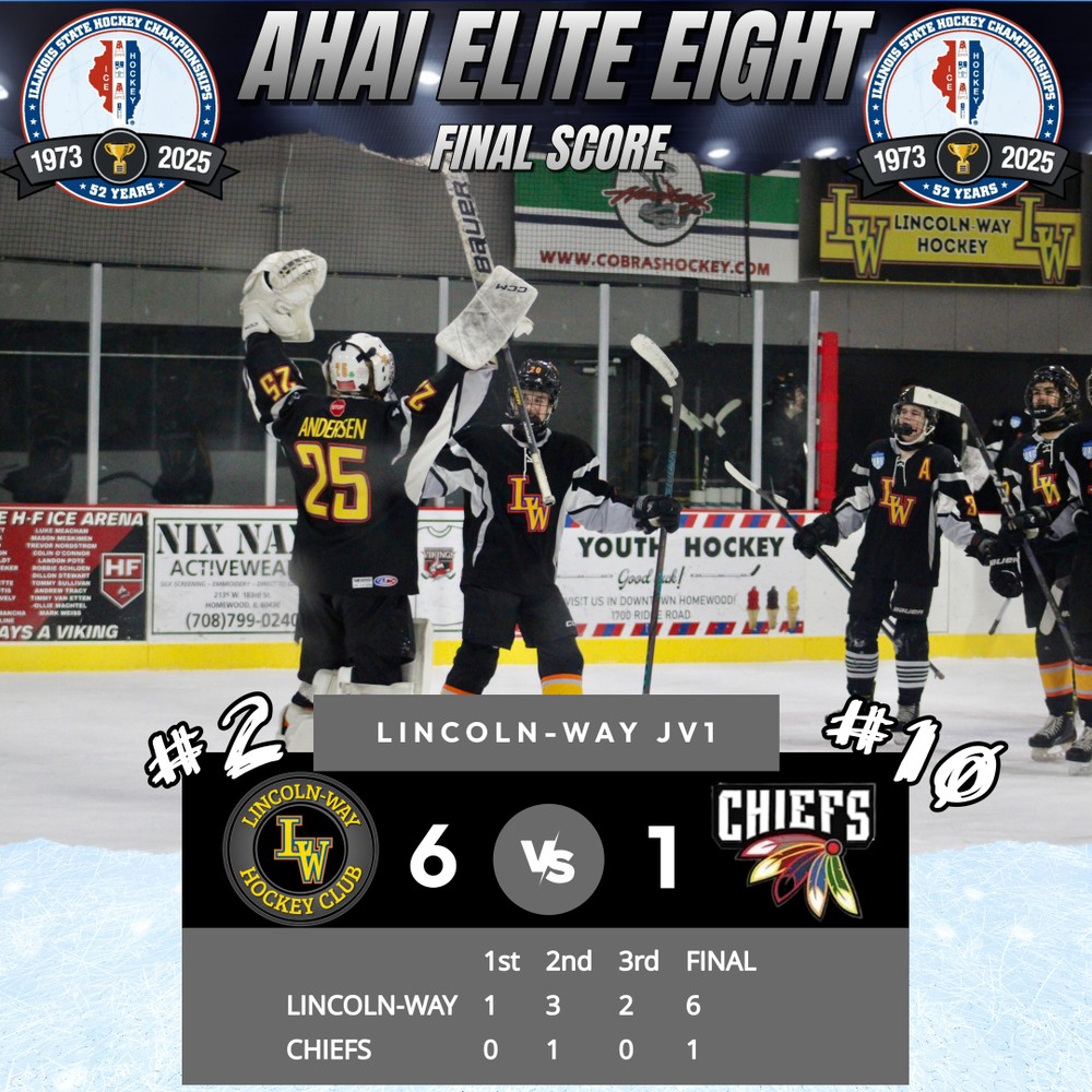 Homewood, IL – The #2 Lincoln-Way JV1 hockey team delivered a powerful performance on Friday night, defeating the #10 Chiefs 6-1 at the Homewood-Flossmoor Ice Arena and securing their spot in the AHAI State Final Four.