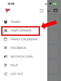 - Log in to the Crossbar App, tap on the “hamburger” icon (3 horizontal lines) in the top left and select “PARTICIPANTS” from the menu